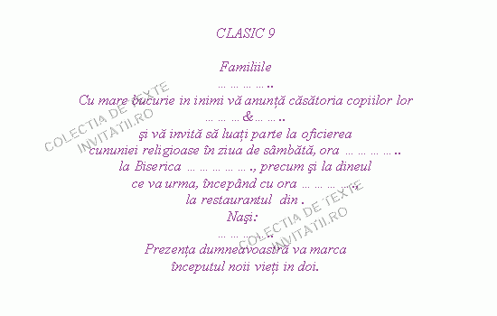 Texte invitatii nunta clasique.- Oferta invitatii: carduri de confirmare gratuite si reducere de 10% la cardurile plic de bani